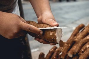 Cuci terlebih dahulu singkong yang sudah dikupas dan iris tipis hingga benar-benar bersih. Langkah ini penting untuk menghilangkan kotoran dan sisa getah yang menempel pada permukaan singkong.